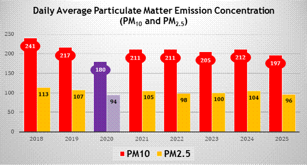 The year 2025 has thus witnessed the lowest ever average values for PM10 and PM2.5 concentrations, barring the Covid affected year 2020.