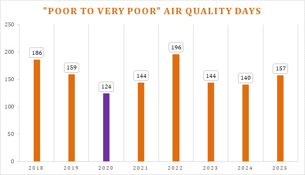 | Avg AQI | 2018 | 2019 | 2020 | 2021 | 2022 | 2023 | 2024 | 2025 |
