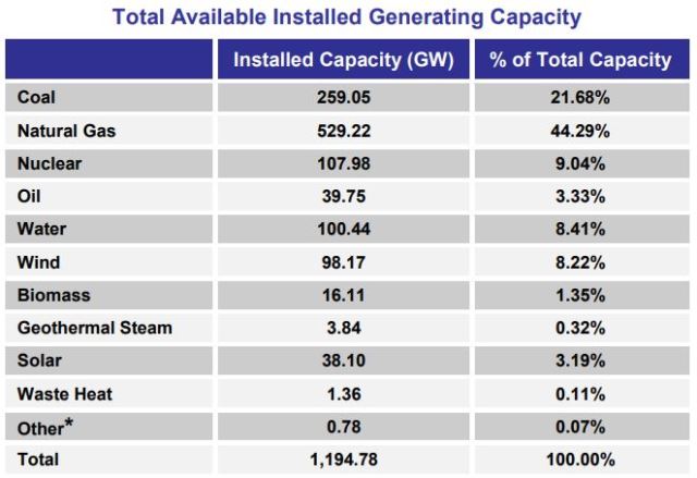 FERC lists currently installed solar (38.10-GW) as providing 3.19 percent of total U.S. generating capacity. ERC does not include small-scale solar (i.e., less than 1-MW) which accounts for roughly one-third of U.S. installed solar generating capacity. Its inclusion would mean that total renewable energy generating capacity is now greater than that of coal, said the SUN DAY Campaign.