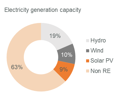 Figure 2: Sources of electricity generation capacity and total generated electricity in 2018