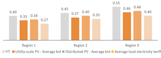 Figure 6: 2019 first auction results and tariffs in RMB/kWh by region